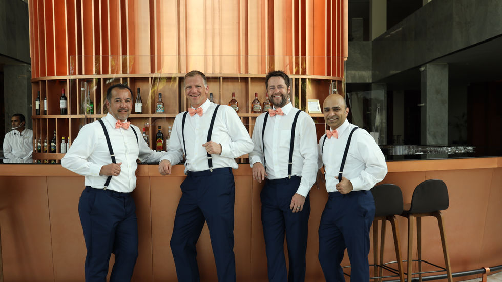 Capture the joy and excitement of wedding celebrations with a collection of beach wedding, wedding party jumping, and Groomsmen